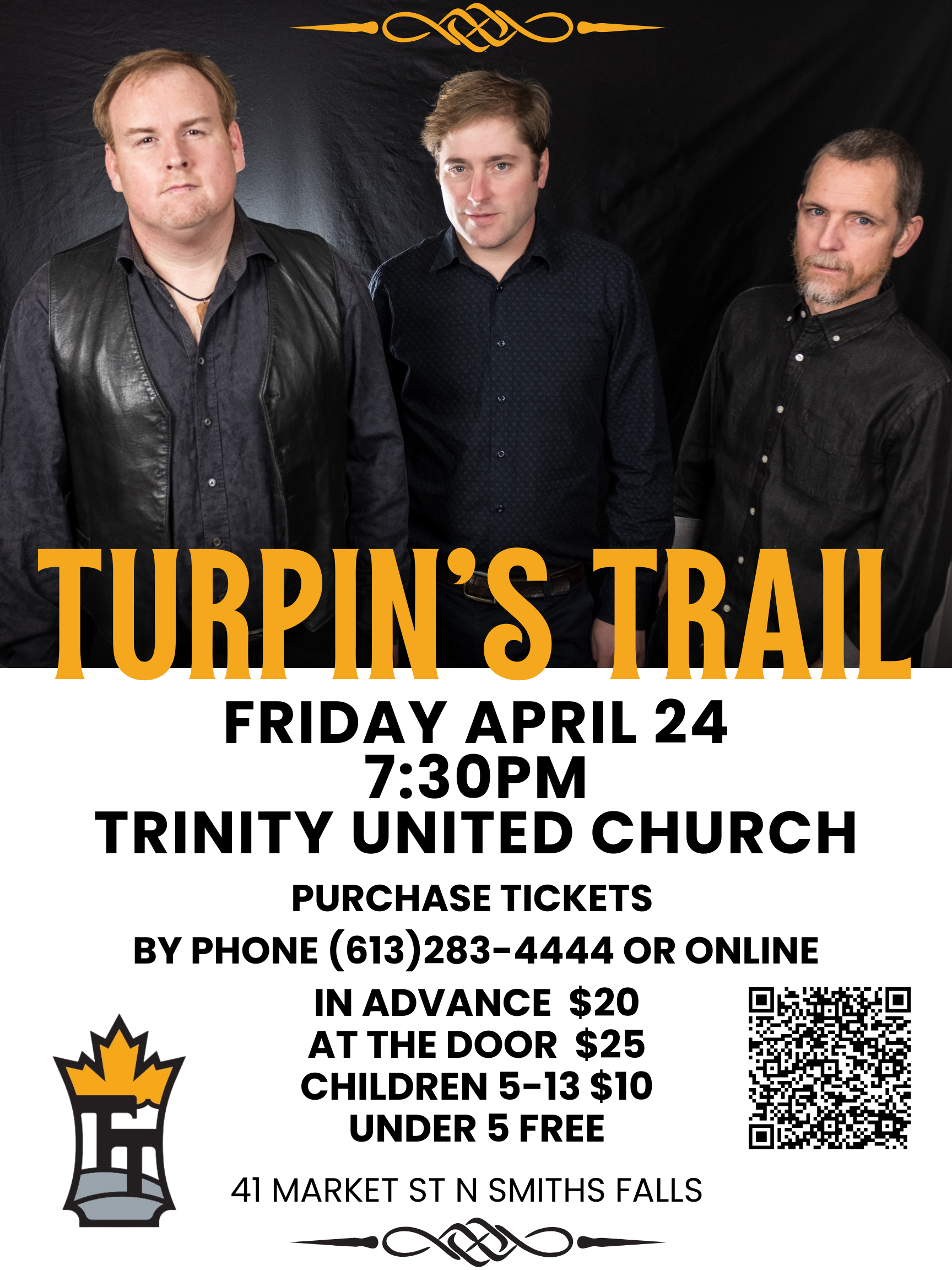 - For more information, please see the ticket link; an event poster is also available at https://turpinstrail.com/misc/Trinity-United-Church.png
